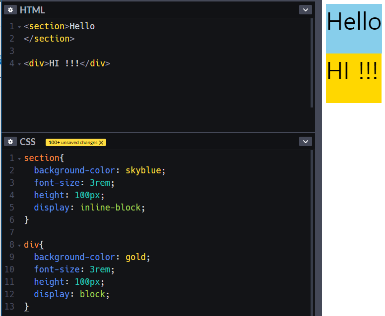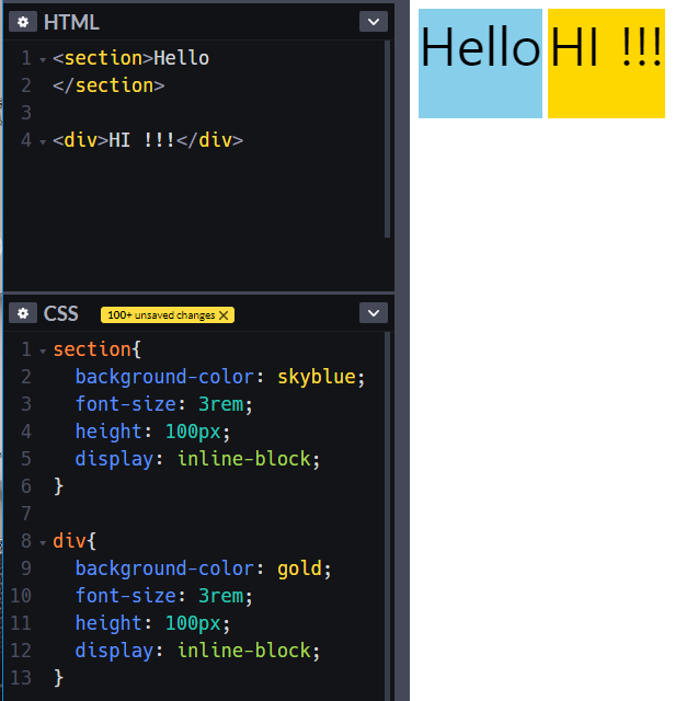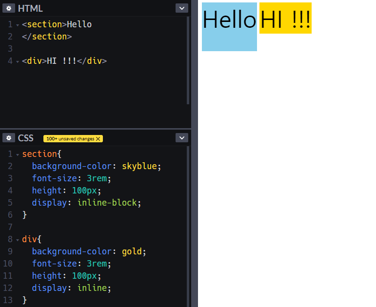 inline-block inline-flex inline-table 등은 height의 높이에 맞춰 배경색이 적용된다. 그리고 두개의 태그가 같은 라인에서 쓰인다.
